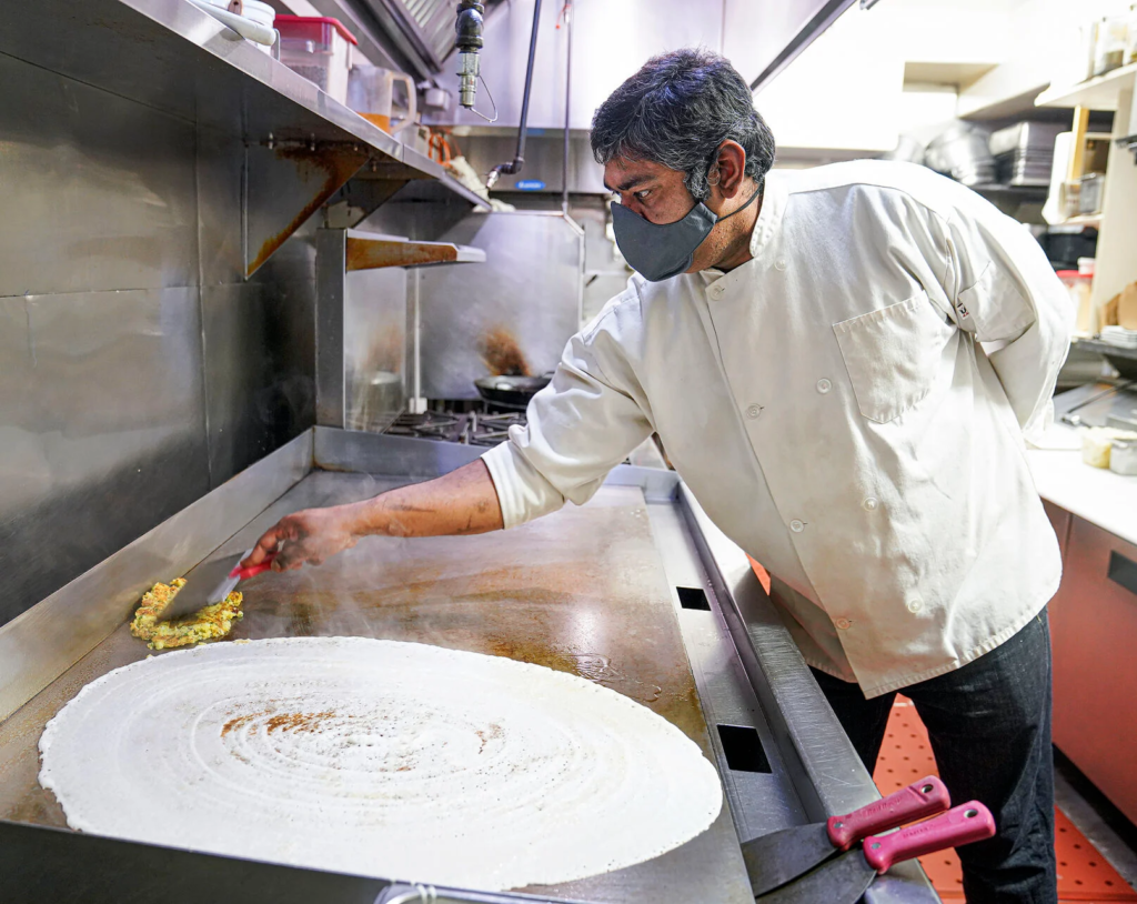 Show the artistry behind your signature dishes. Film your chef rolling out dough for parathas, assembling the perfect dosa with precise batter spreading, or garnishing dishes with fresh herbs and spices.