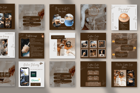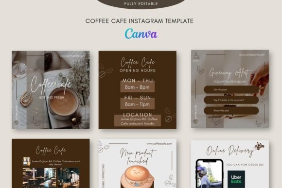 Create a stylish and professional Instagram feed for your coffee café or restaurant with these easy-to-edit Canva templates. Perfect for promoting menu items, offers, announcements, and daily posts—no design skills required.