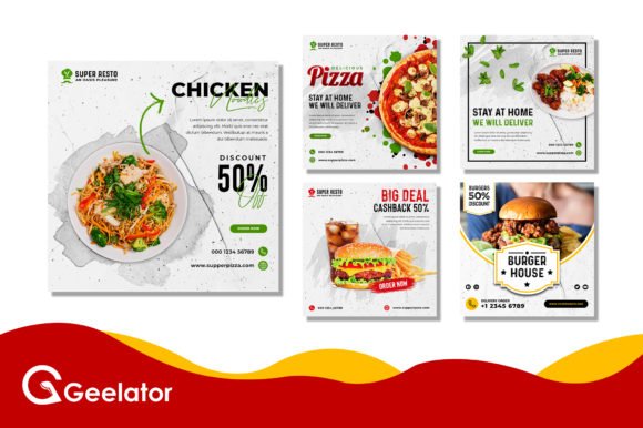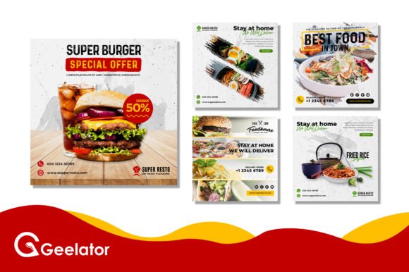 Featuring an appetite-boosting red color palette with clean yellow and white accents, each design is crafted to look premium, modern, and irresistible.
