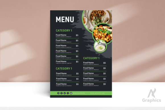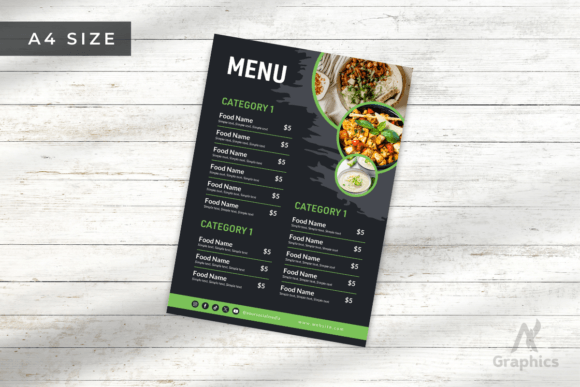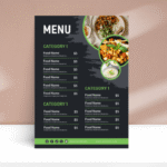 A modern, dark-themed restaurant menu template designed for fast food restaurants, cafés, and food businesses looking for a stylish, professional menu. This is a digital download only — no physical item will be shipped.